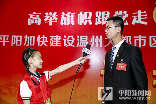 5月8日,共青團平陽縣第十九次代表大會隆重開幕。我作為縣傳媒中心小記者團中的一員有幸參與此次盛會。會前,我和縣優秀的青年團代表之一浙江一鳴食品股份有限公司團委書記高通共同探討了我縣共青團工作如何以青年為本的話題。