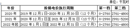 二、2021年低壓居民用戶階梯電價(jià)執(zhí)行周期由原來的2020年12月1日至2021年11月30日調(diào)整為2020年12月1日至2021年12月31日(共13個(gè)月),2022年起按正常自然年執(zhí)行。
