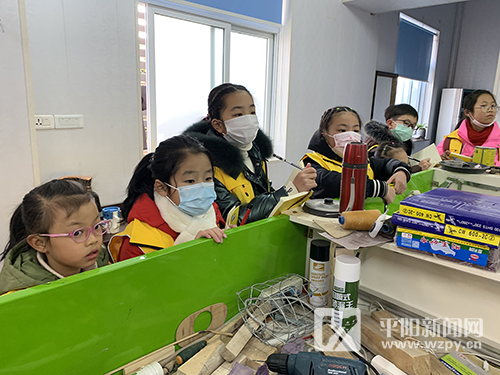 當天下午,40余名小記者來到平陽木偶戲保護傳承中心,在青年木偶劇演員周海霞姐姐的帶領下先后參觀了木偶制作場地、木偶服裝制作室、木偶化妝間以及成品陳列室。親密接觸了木偶從“雛形”到最后成品的制作過程,領略了木偶制作的木工、彩繪、油漆、戲服裁剪、縫紉、刺繡、布景制作等制作技藝。