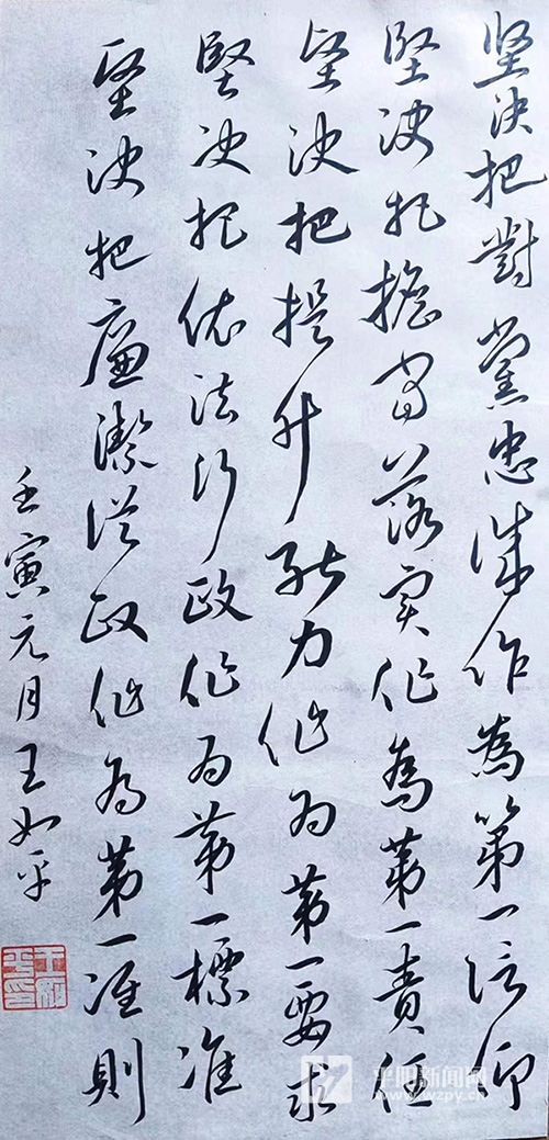 連日來,參加縣十七屆人大一次會議和縣政協十六屆一次會議的人大代表和政協委員們匯聚一堂,共同謀劃我縣經濟社會發展大計。在如此鼓舞人心的時刻,不少愛好書法的代表、委員飽蘸筆墨,為兩會的召開和社會的發展揮毫創作。