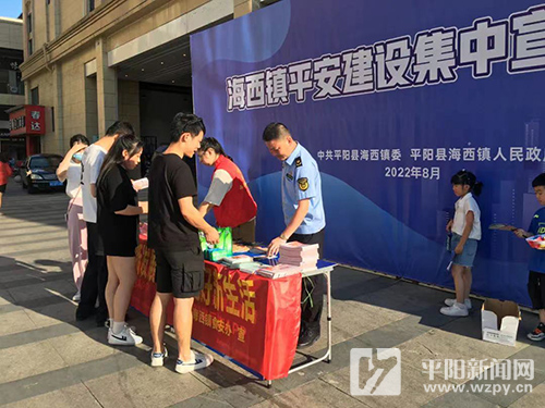 本網訊 (記者 墨語 通訊員 陳海霞 編輯 林蟬) 8月5日,海西鎮組織綜合信息指揮室、食安辦、應急管理中心、司法所等開展海西鎮平安建設集中宣傳月活動,進一步增強群眾參與平安創建意識,營造和諧穩定的社會環境。