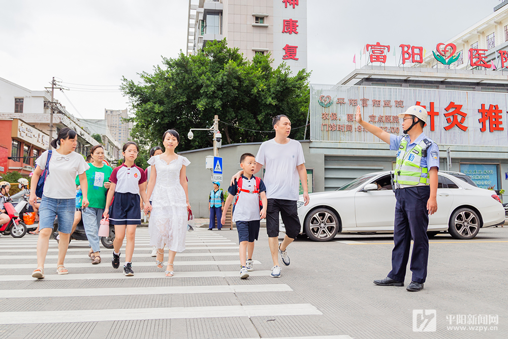 隨著新學期的開始,平陽交警全面開啟“護學模式”,在轄區各學校出入口等重點路段對過往車輛進行管控、分流,維護中小學校周邊交通秩序,全力護航開學季。
