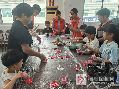 活動開始,志愿者先跟小朋友們分享了中秋節的由來,讓小朋友們感受到了傳統文化的魅力;然后講解了制作月餅的步驟和注意事項并將材料、工具分給小朋友讓他們親自動手制作月餅。從搟面團到包餡壓模,不一會兒一個個晶瑩剔透的冰皮月餅就做好了。看著自己親手做的月餅,孩子們特別有成就感。