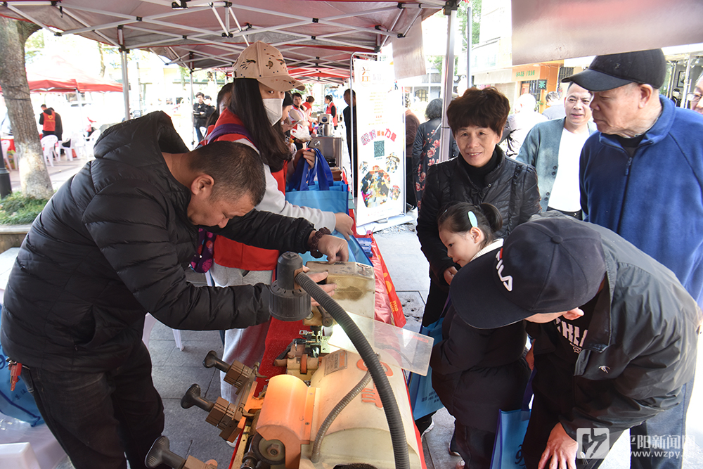各志愿隊帶上各自最拿手的技能以攤位形式進行服務共享,為居民提供免費的貼心體驗服務,有關注健康素養的心理咨詢、健康義診、測血壓等健康服務,有滿足安全需要的化妝品藥品快檢、反家暴反詐宣傳、防跌倒等科普服務,還有增添生活溫度的免費配鑰匙、家電義修等鄰里服務以及各個鄉鎮帶來的獨具特色的助農產品展銷。