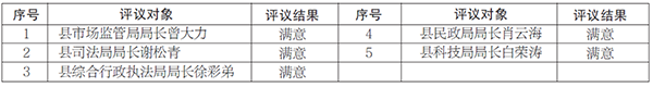 平陽縣第十七屆人民代表大會常務委員會第十三次會議于2023年11月29日對縣科技局、縣民政局、縣司法局、縣市場監管局、縣綜合行政執法局等五個縣政府組成部門主要負責人2023年度履職情況進行了評議。現將評議結果公告如下: