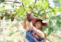 昆陽鎮上林垟村建銀農業專業合作社種植基地里,一串串紫色的葡萄垂掛在綠葉之間,清香沁鼻,讓人垂涎欲滴。 本網記者 鮑思沖 攝 編輯 林錦屏