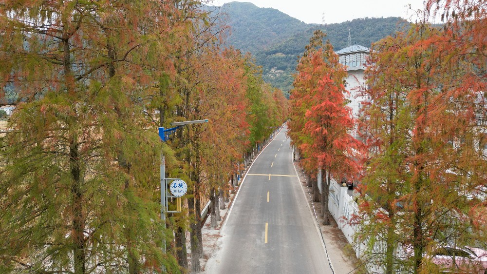 近日,昆陽鎮石塘村道路兩側的水杉進入最佳觀賞期。