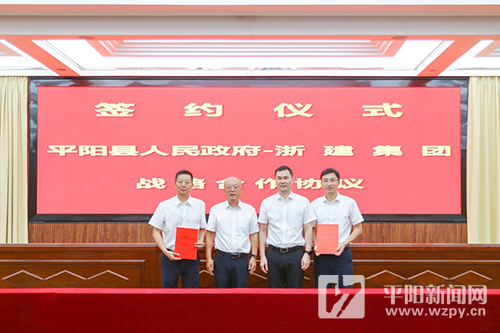 本網訊 (記者 張蔚旻/文 陳云散/攝 編輯 金毅剛) 8月14日,我縣與浙江省建設投資集團股份有限公司(以下簡稱浙建集團)舉行戰略合作協議簽約儀式,標志著平陽在推進縣域城市現代化進程上邁出了重要一步。縣委副書記、縣長陳桂雷,浙建集團黨委副書記、總經理葉錦鋒出席并致辭。